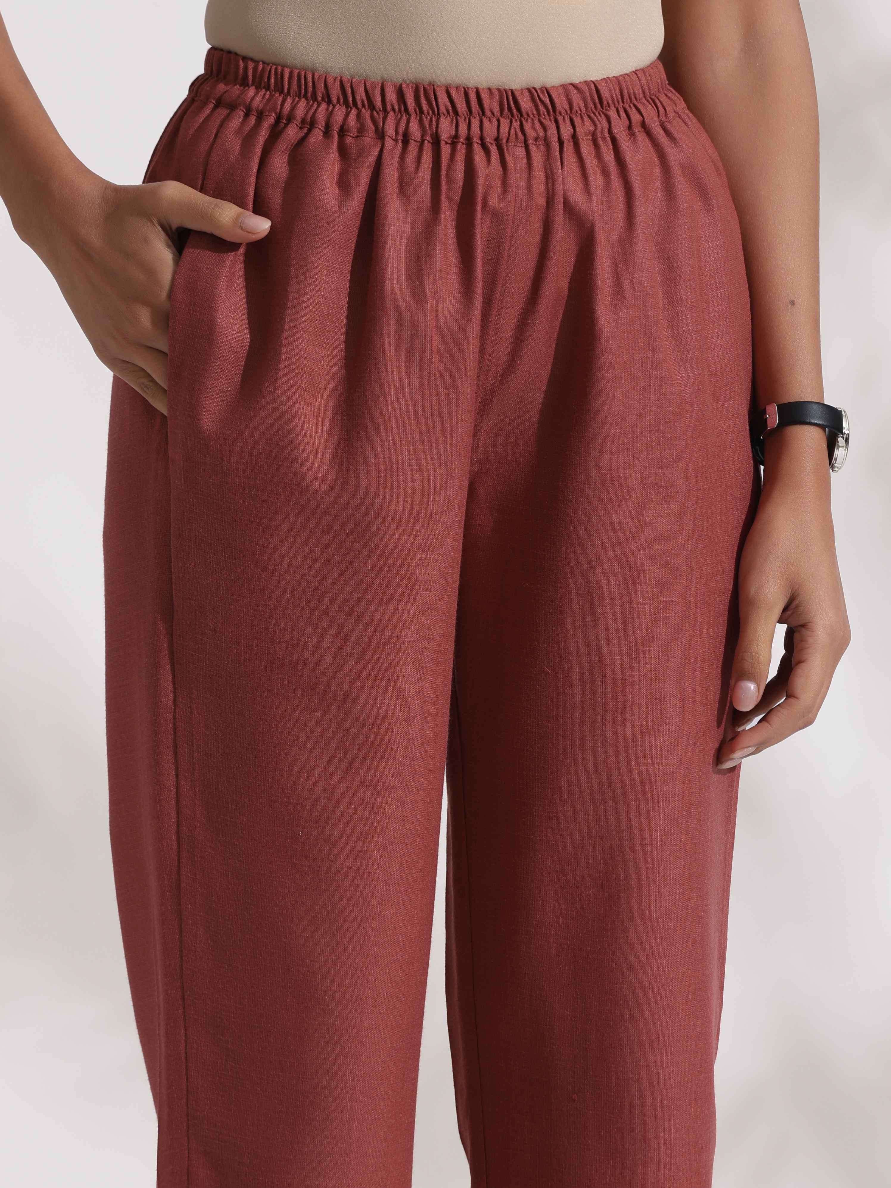 trueBrowns Brown Slub Highslit Kurta SetDescription Elevate your style with this brown straight kurta, paired with pink pants, it's an ideal blend ...