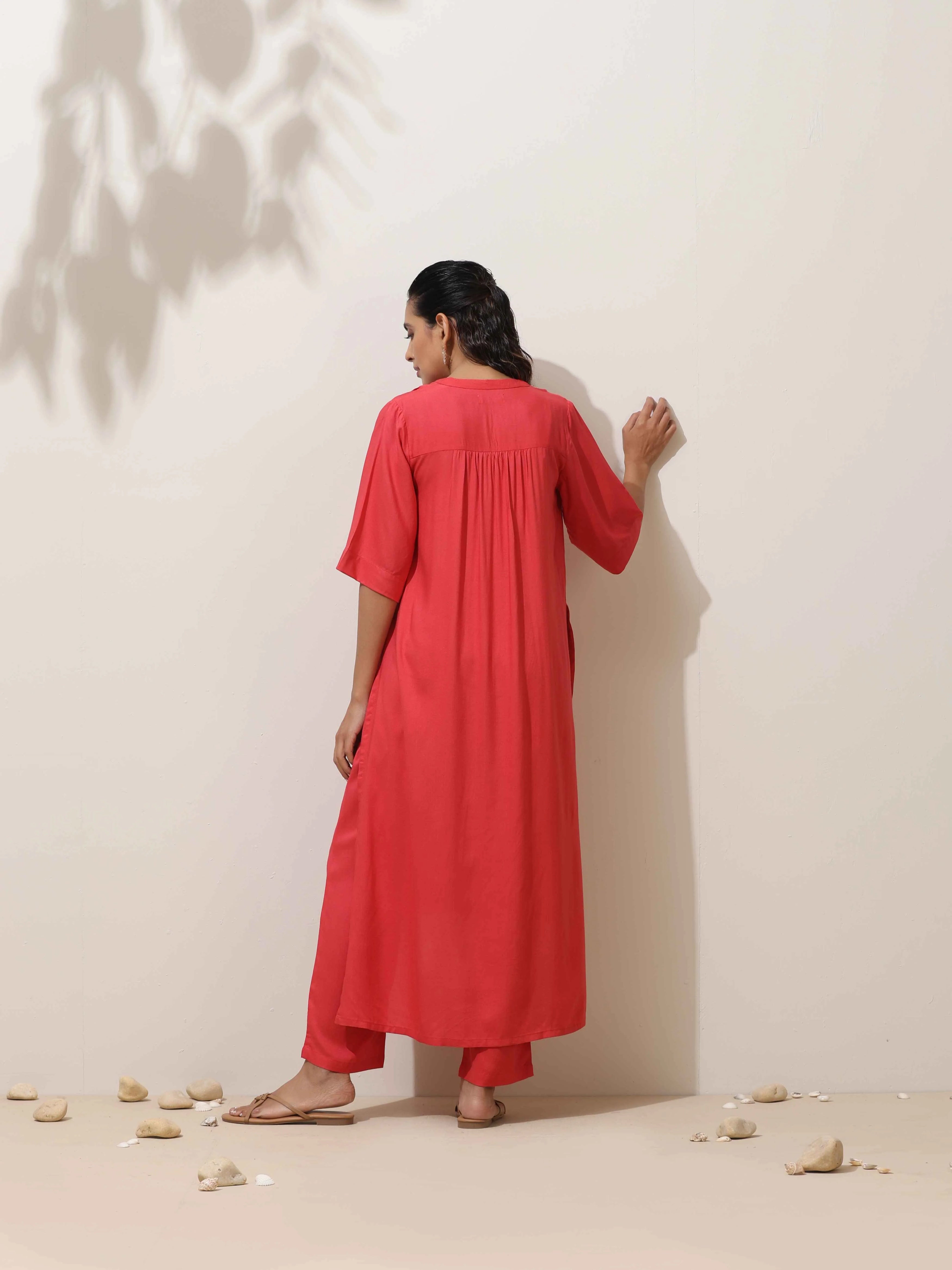 trueBrowns Coral Viscose Kurta Pant Set - XS