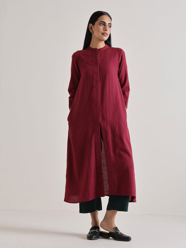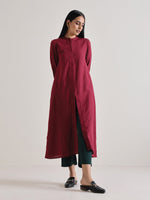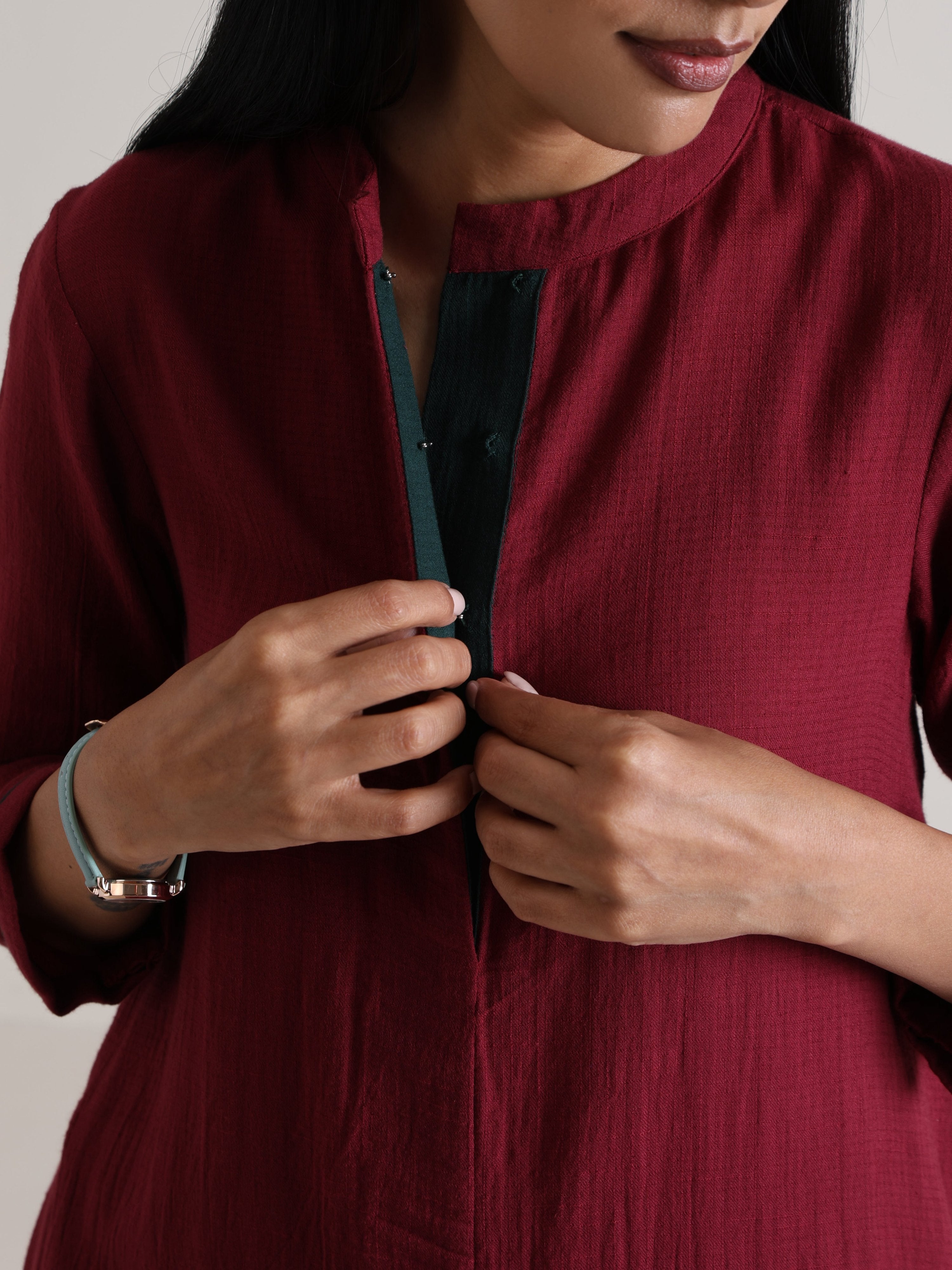 trueBrowns Maroon Placket Kurta Pant Set - XS