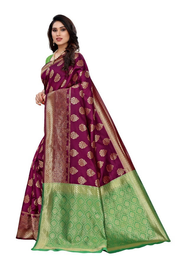 Vamika Banarasi Jacquard Weaving Wine Saree (Dangal Wine)