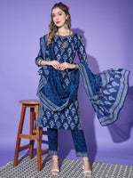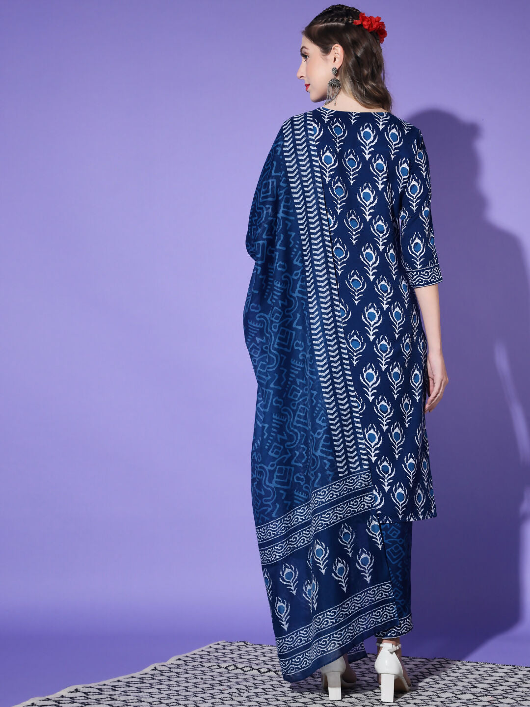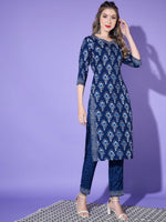 Vamika Poly Rayon Printed Royal Blue Party Wear/Casual Wear/Office Wear Kurta Set/Suit