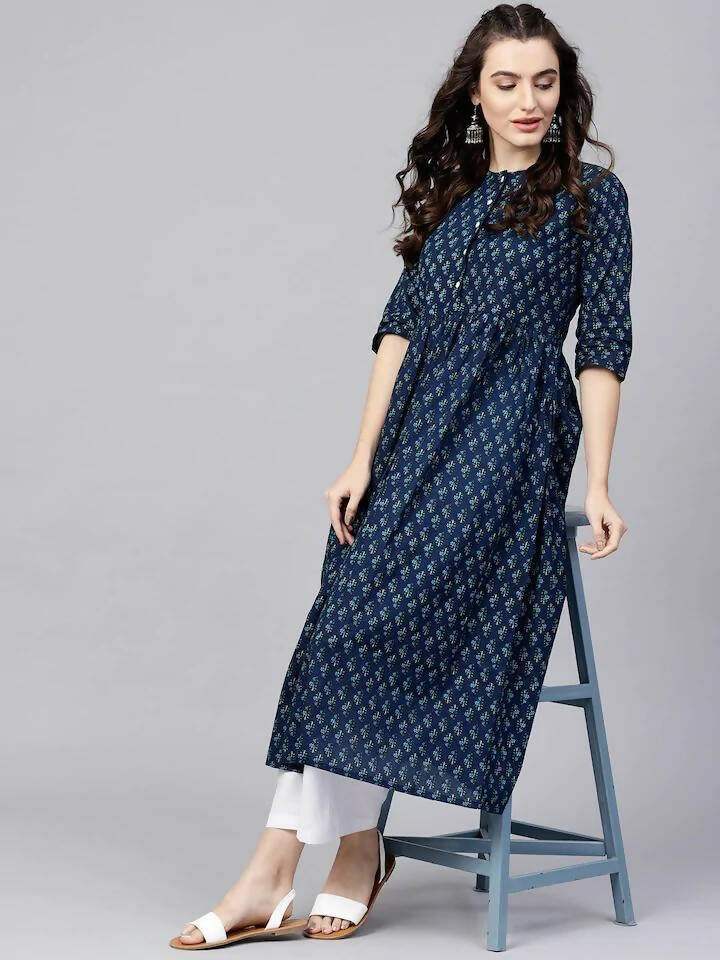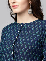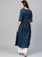 Vamika Printed Cotton Blue Party Wear/Casual Wear Women Kurta Set/Suit - M