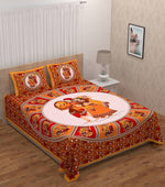 Vamika Printed Cotton Dafli Orange Bedsheet With Pillow Covers (PM Dafli Orange)