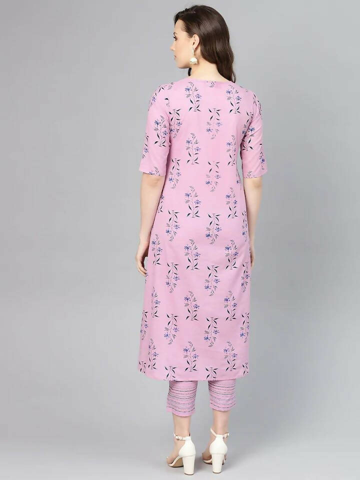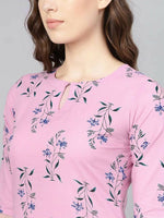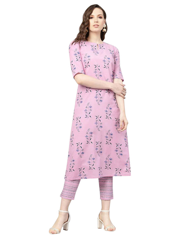 Vamika Printed Cotton Pink Party Wear/Casual Wear Women's Kurta Set/Suit