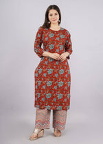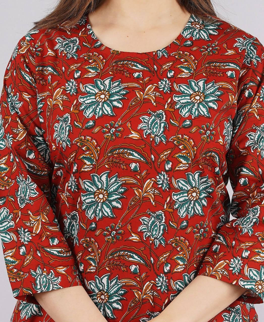 Vamika Printed Cotton Red Party Wear/Casual Wear Kurta Set/Suit
