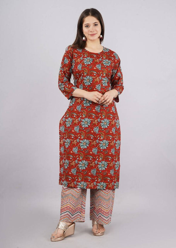 Vamika Printed Cotton Red Party Wear/Casual Wear Kurta Set/Suit Work: Printed Fabric Top: Cotton Fabric Bottom: Cotton Fabric Dupatta: NA Colo...