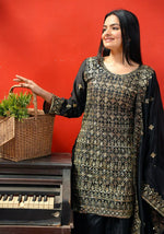 Prazu Fashion Black Chinon Silk Embroidered Sharara Suit