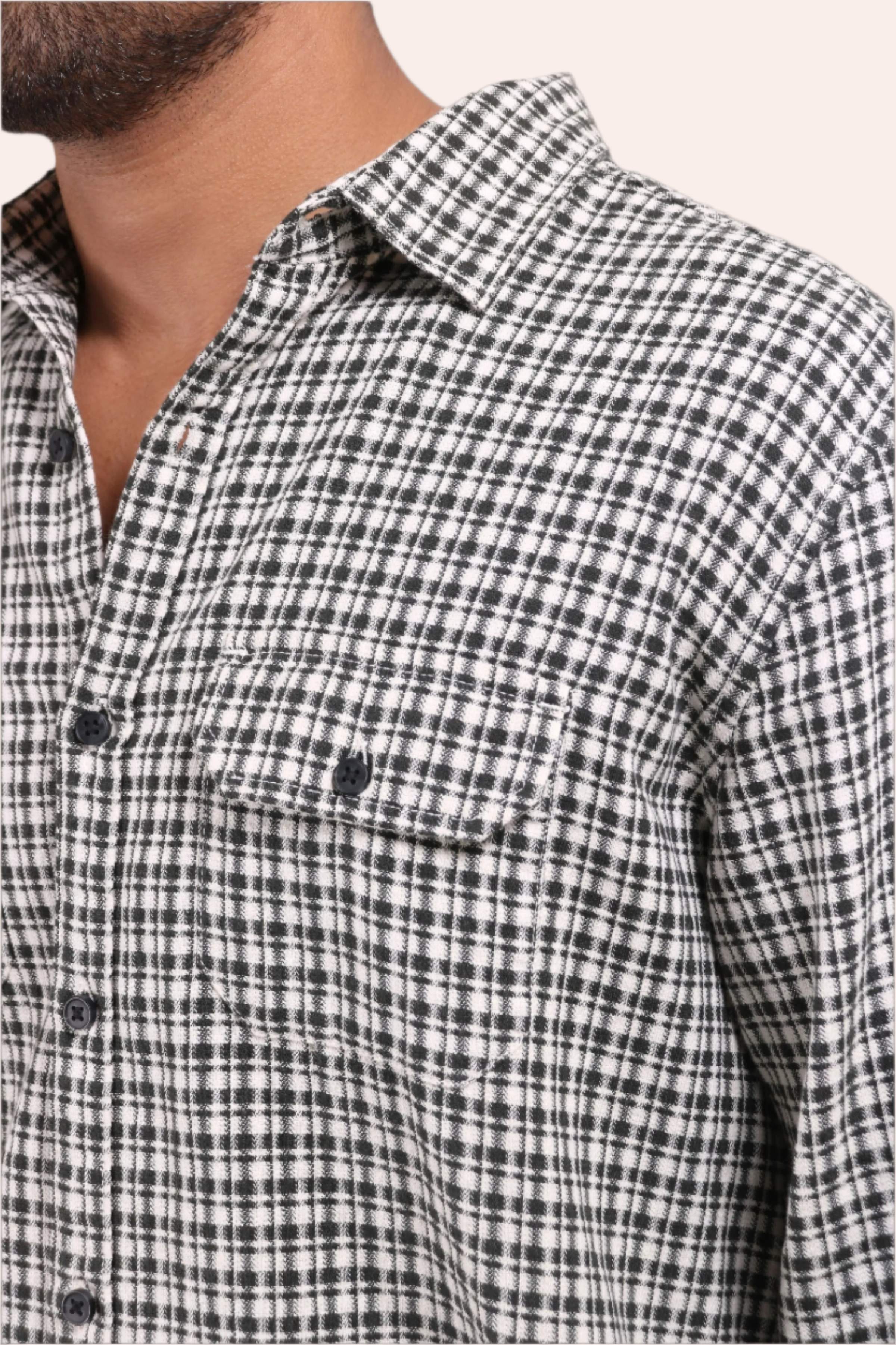Xkind White Textured Checks Overshirt/ ShirtProduct Details:This textured checks shirt is the perfect classic for winter wear. The fabric is extrem...
