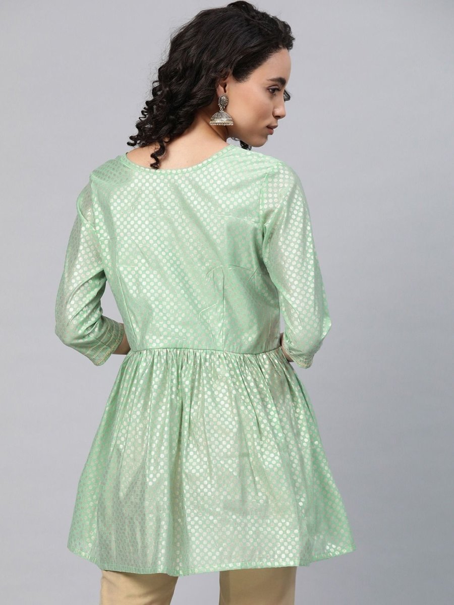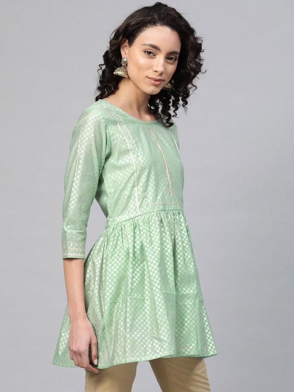 Ahalyaa Women Sea Green Chanderi Silk Golden Printed Tunic - XS
