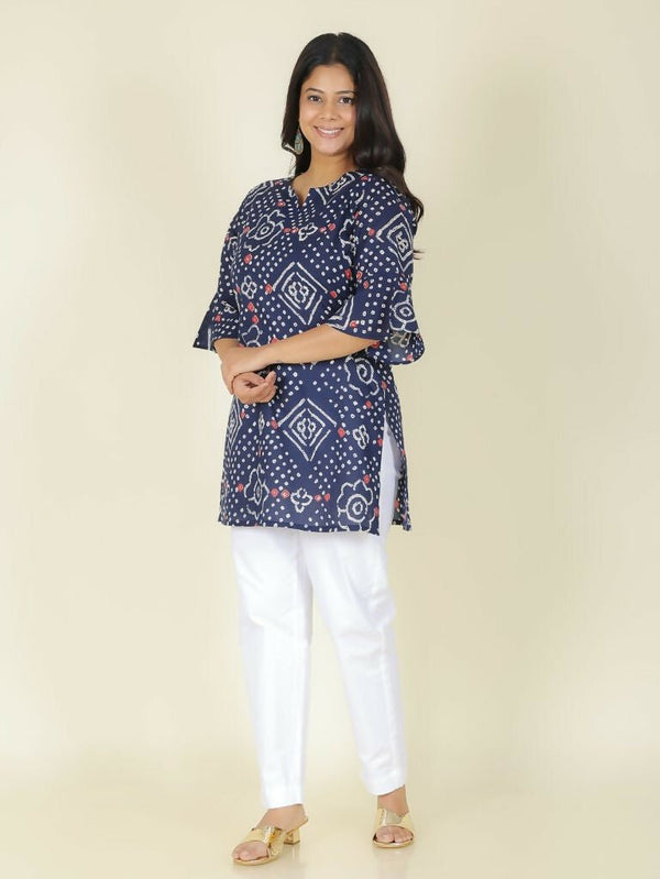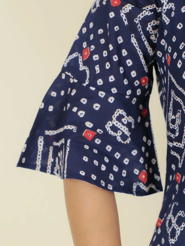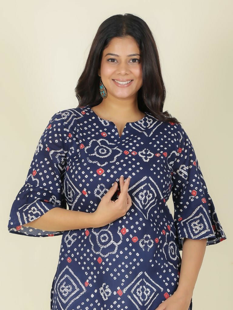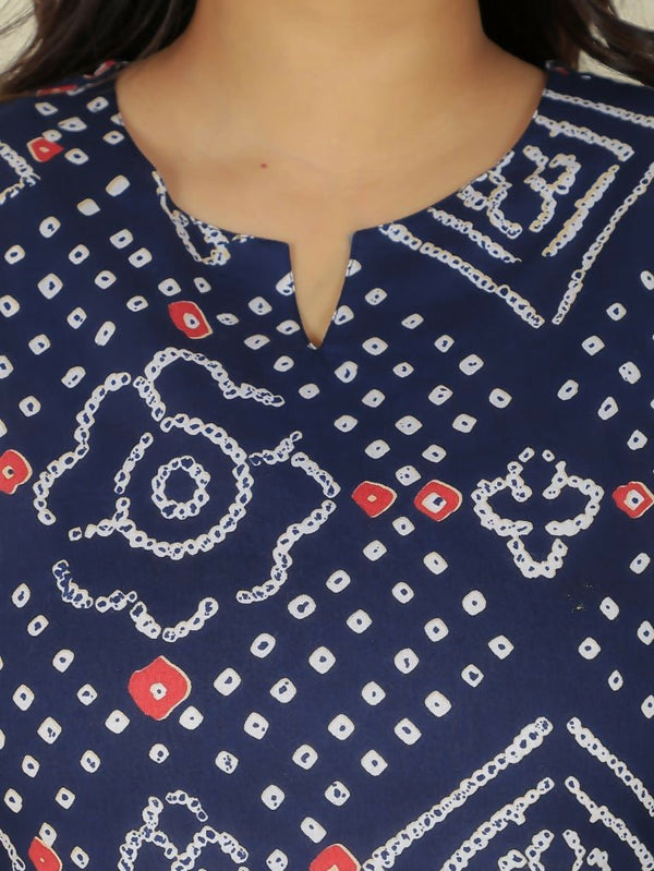 Aramya Straight Soft Cotton Bandhani Print Women's Kurta - BlueElevate your style with our uniquely designed kurta, perfect for daily wear or casua...
