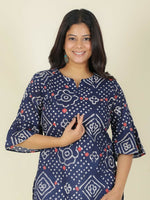 Aramya Straight Soft Cotton Bandhani Print Women's Kurta - Blue