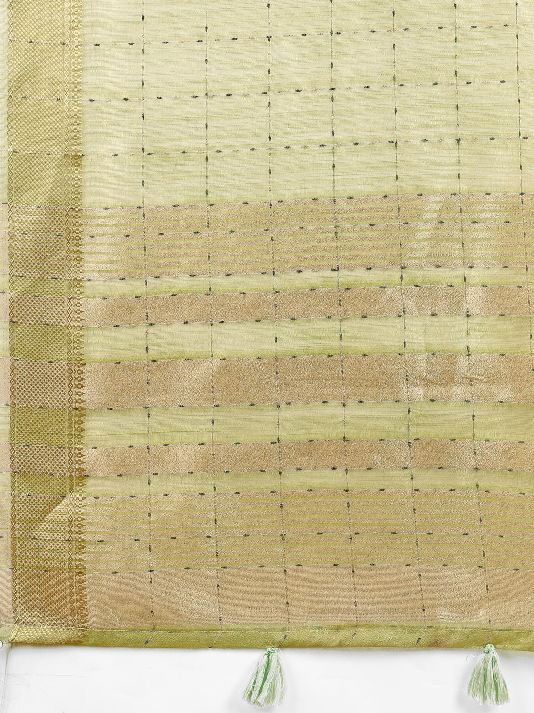 Astita Elegant Light Green Organza Saree with Golden Zari Border & Designer Tassels | Lightweight Partywear Saree - Distacart