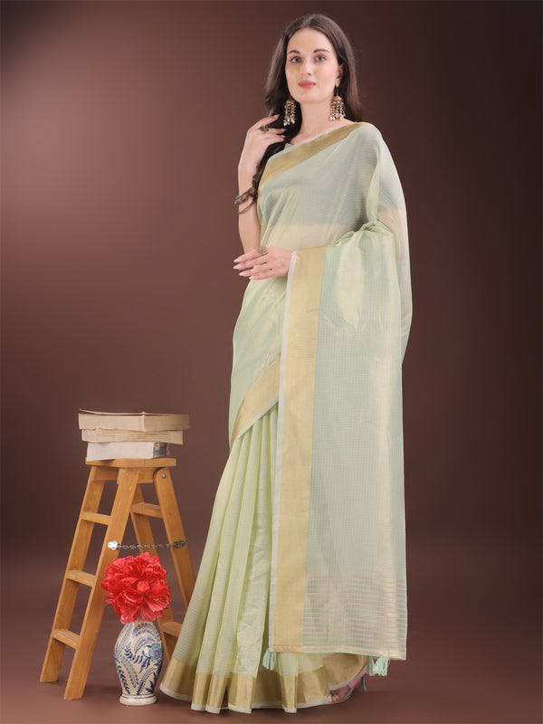 Astita Elegant Light Green Organza Saree with Zari Border | Lightweight Transparent Saree with Blouse Piece for Festive & Daily Wear