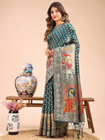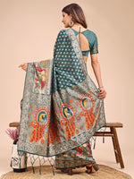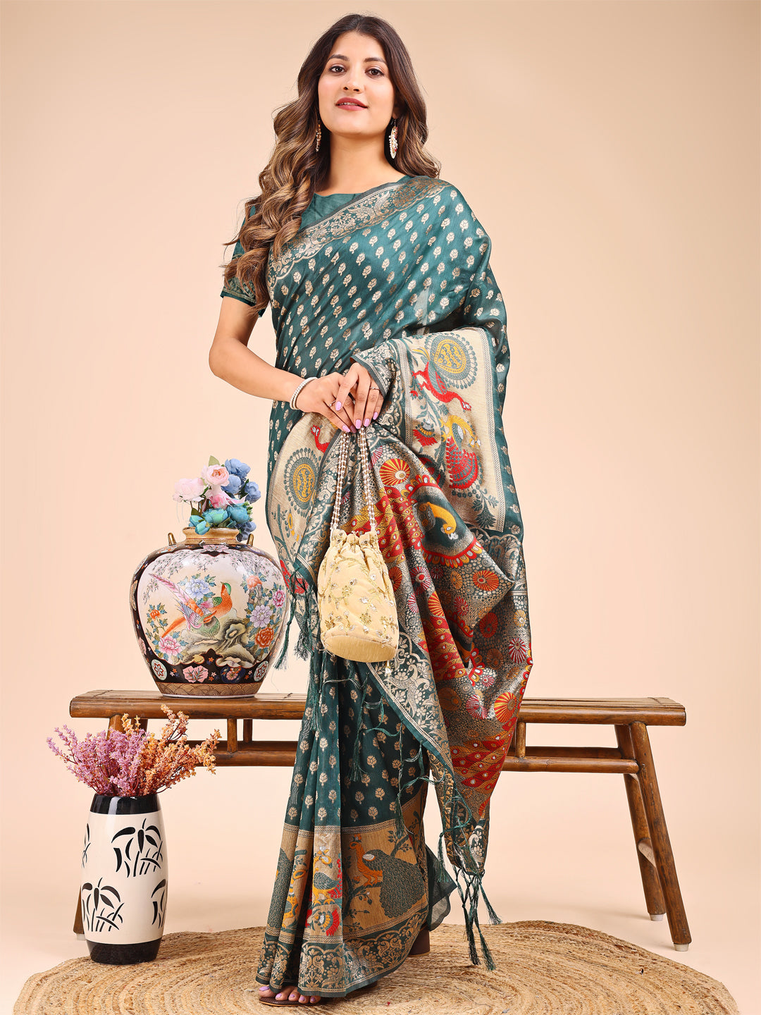 Astita Majestic Green Linen Cotton Saree with Royal Peacock Pallu - A Celebration of Heritage and Grace - Distacart