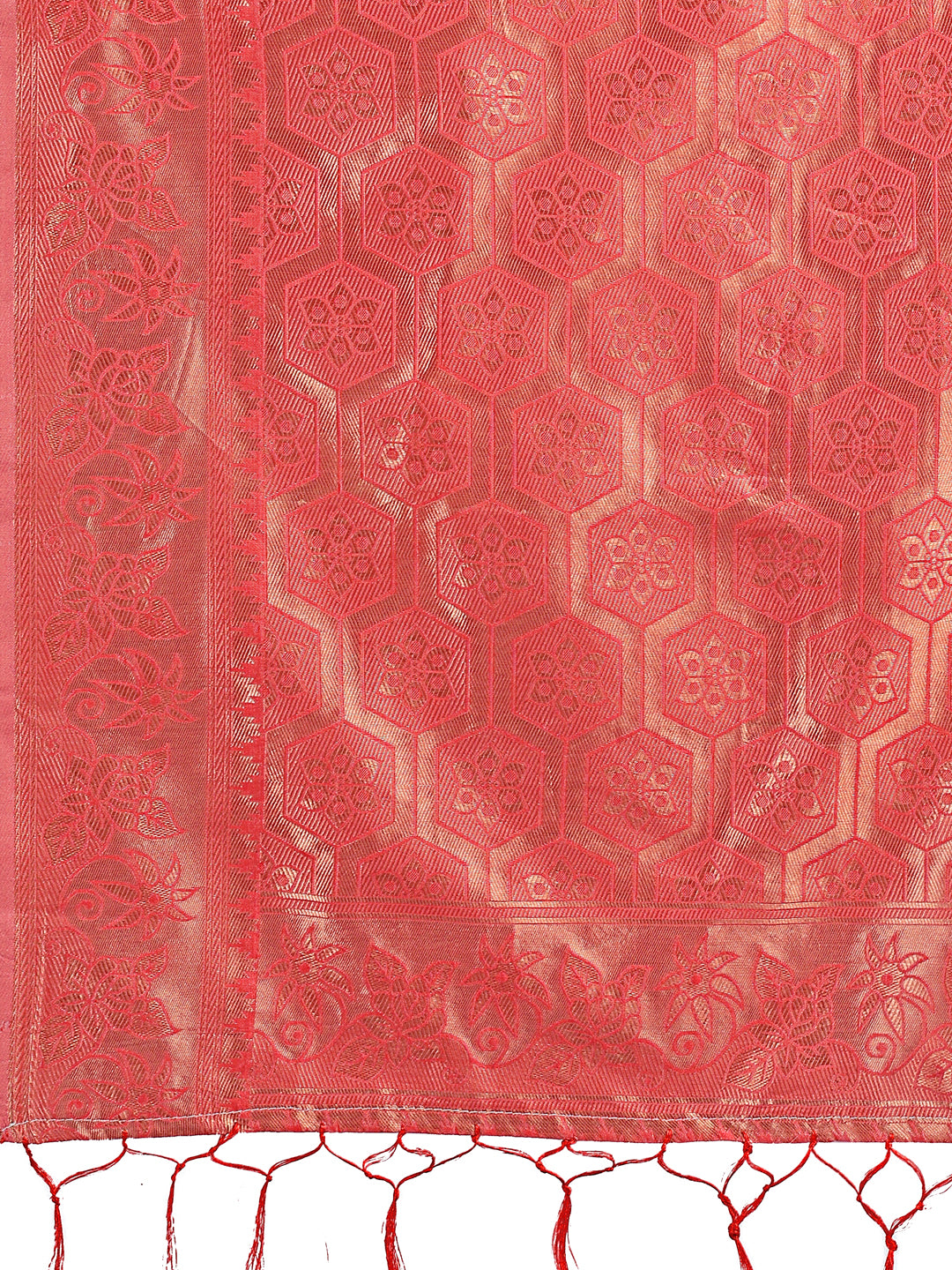 Astita Orange Woven Zari Traditional Linen Cotton Saree with Rich Pallu & Unstitched Blouse - Festive & Wedding Wear Saree - Default Title