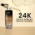 • The true gold of skin care is now available as we introduce 24K Gold Serum, your luxurious secret to radiant, youthful skin. This face serum's water-based formula deeply penetrates the skin, leaving behind a mesmerizing glass glow effect. Infused with gold particles, it boosts your skincare routine while increasing collagen production for firmer, more supple skin. This gold face serum helps to restore your moisture levels, leaving your complexion soft and revitalized. Housed in stylish packaging, it adds a touch of style to your vanity.
