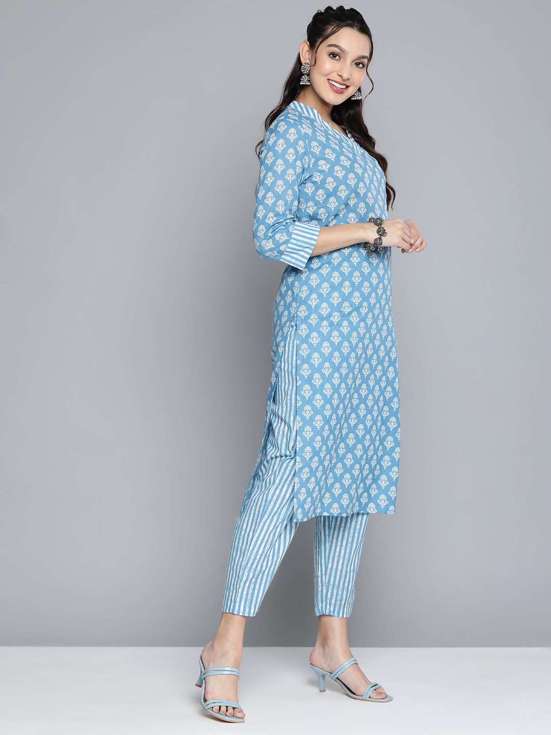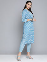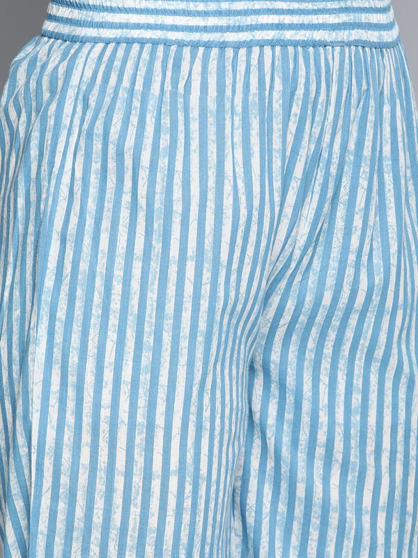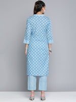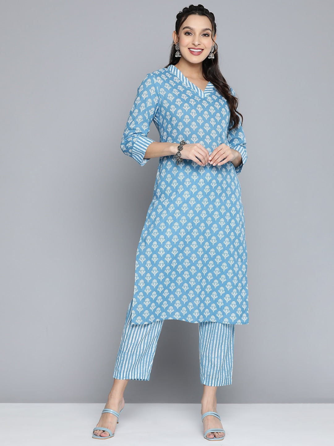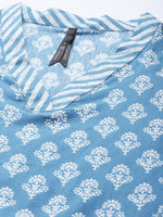 HERE&NOW Women Ethnic Motifs Printed Pure Cotton Kurta with Palazzos Product Details Blue printed Kurta with Palazzos Kurta design: Eth...