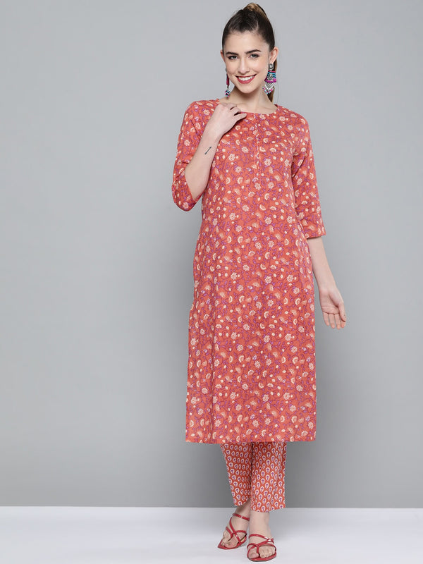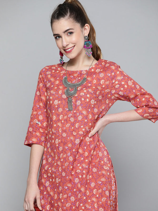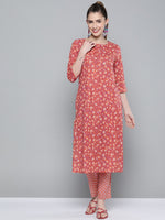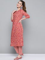 HERE&NOW Women Pink & White Floral Printed Kurta with Palazzos