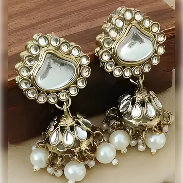 • Statement jhumka earrings with intricate Kundan detailing and dangling pearls that create beautiful movement