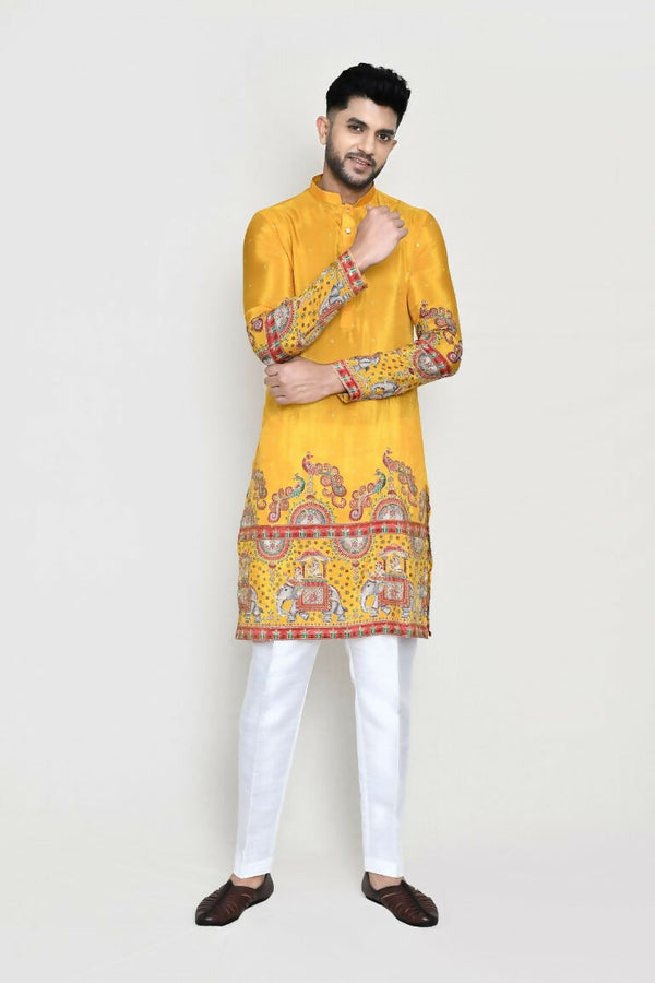 Joban Fashion White Colored Rayon Based With Digital & Sequence Work Fabric Kurta,Straight Fit Pant