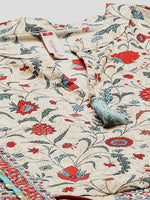Juniper Womens Beige Cambric Printed Flared Kurta