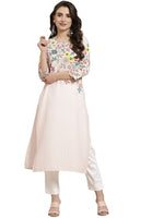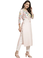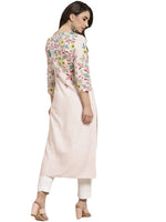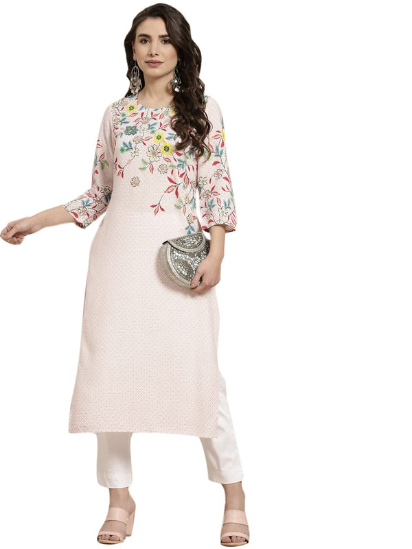 Juniper Women's Pink Floral Printed Rayon Kurta With Sequins & Beads Work - Distacart