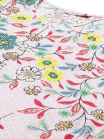 Juniper Women's Pink Floral Printed Rayon Kurta With Sequins & Beads Work