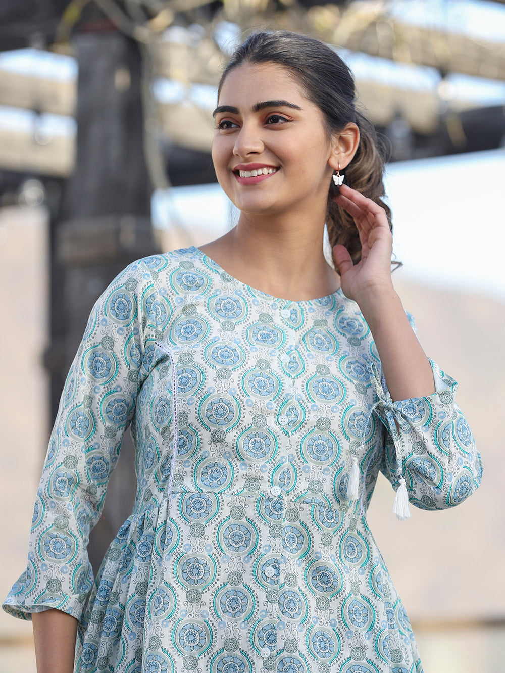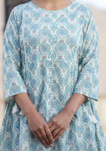 Kaajh Off White Green Printed Shirt Style Cotton Tunic