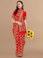 Kalini Red & Golden Floral Zari Silk Blend Banarasi Saree
