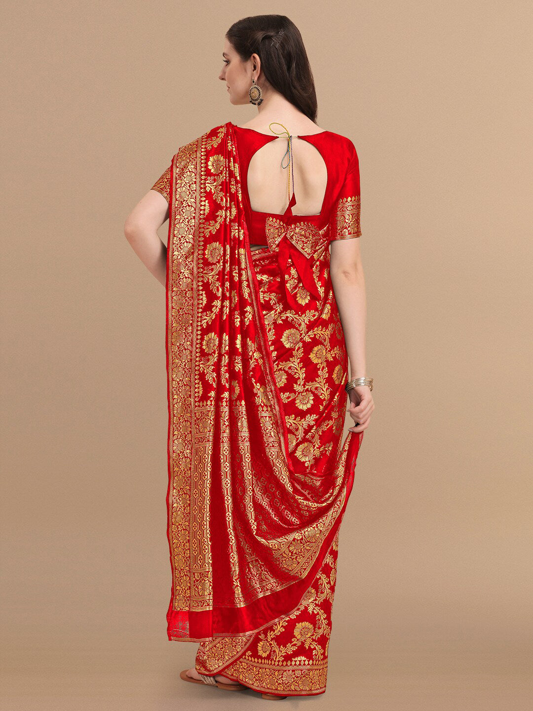 • Red and golden banarasi saree