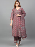 Kalini Women Ethnic Motifs Printed Pure Cotton Kurta with Salwar & Dupatta - M