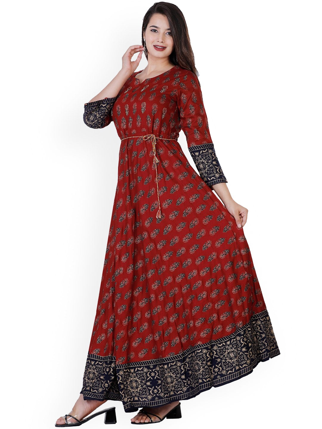 Kalini Women Maroon & Black Ethnic Motifs Printed Anarkali Kurta Product Details Colour: maroon Ethnic motifs printed Round neck Long, regu...