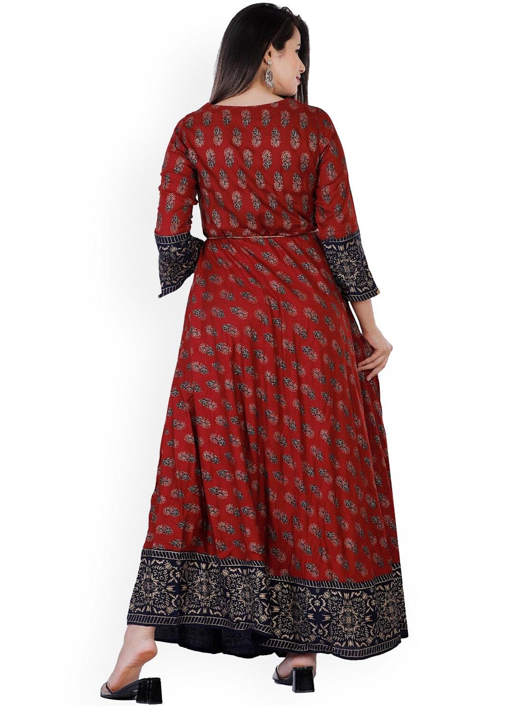 Kalini Women Maroon & Black Ethnic Motifs Printed Anarkali Kurta - Distacart