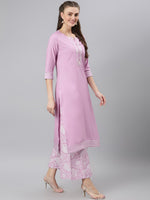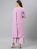 Khushal K Women Lavender Printed Kurta with Palazzos - S