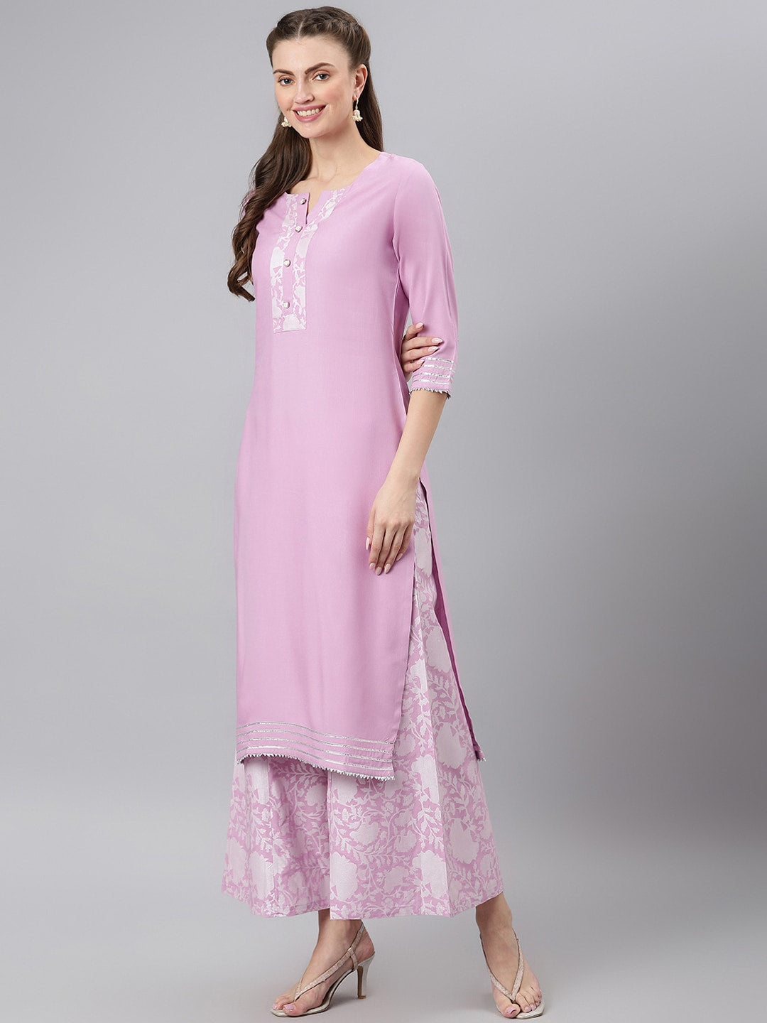 Khushal K Women Lavender Printed Kurta with Palazzos