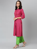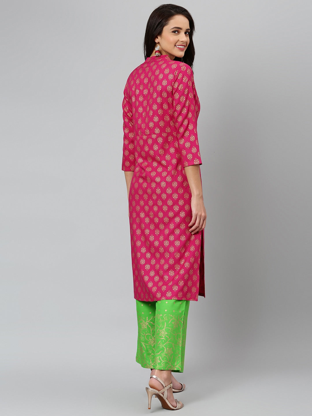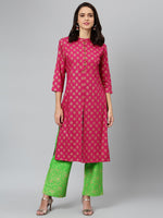 Khushal K Women Pink & Green Printed Kurta with Palazzos