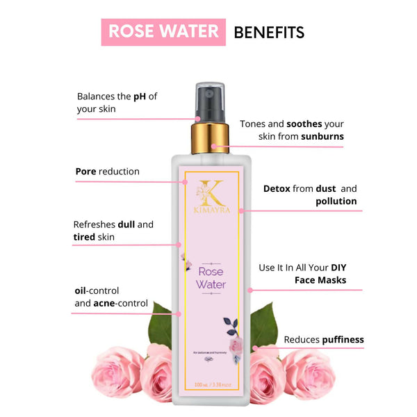 Kimayra Premium Rose Water Spray For Face - Skin Toner/Makeup RemoverAbout the Product: PURE & ORGANIC ROSE WATER – Kimayra World brings pure r...