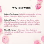 • NATURAL GLOW WITH BALANCED PH LEVELS – Organic rose water enables your skin to restore its natural pH level that ensures softer, shinier and healthy skin.