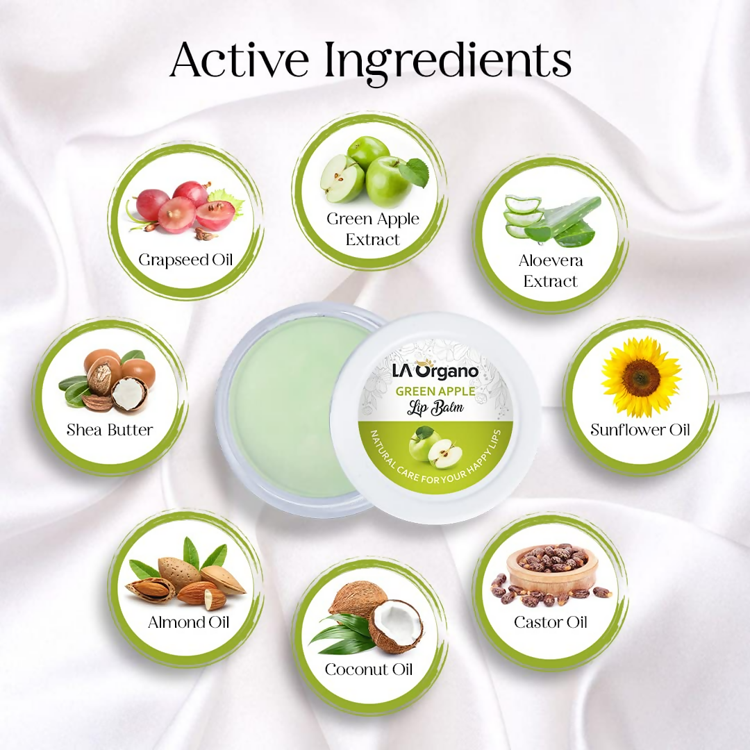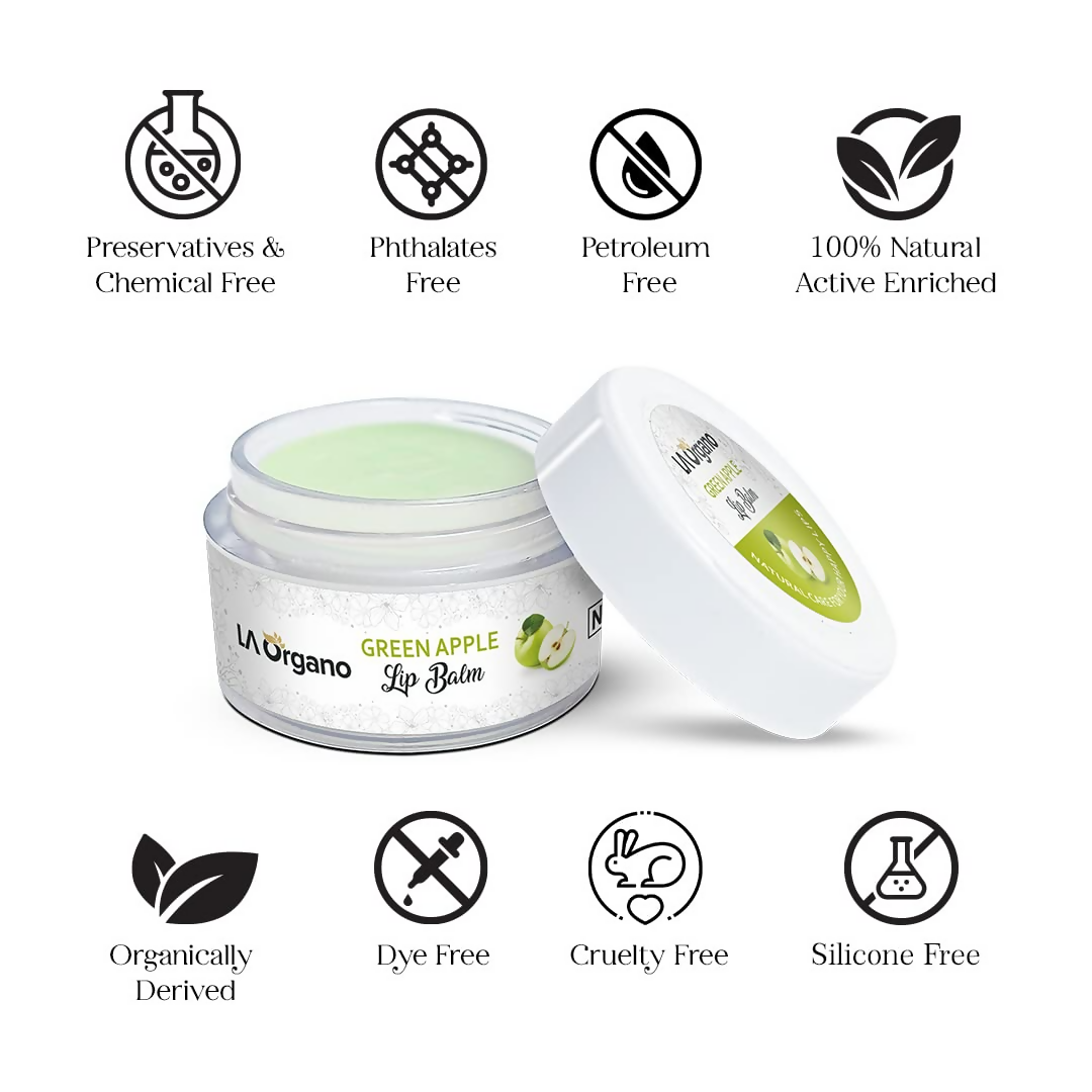 LA Organo Green Apple Lip Balm For Dry Chapped Lips - 10 gm