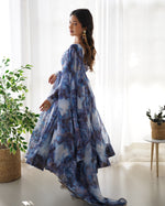 Lorenvalley Navyblue Soft Organza Silk With Marble Print Anarkali Pant With Dupatta Set Anarkali Kurta Fabric: - Heavy Pure Soft Organza Silk Marbl...