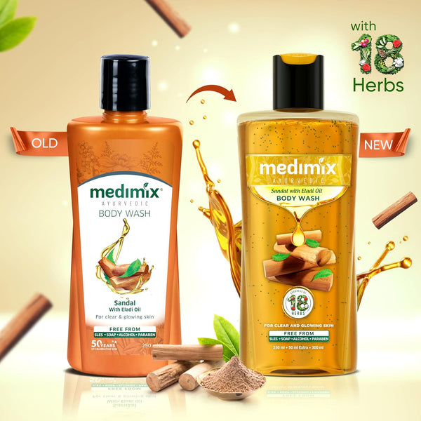 • Medimix Ayurvedic body wash comes with Sandal & the goodness of Eladi oil. The combination of all these ingredients makes your skin clear & glowing and sandal smells heavenly after every bath. Indulge & let centuries of skincare secrets get your Skin Fit with Fast Acting Ayurveda.