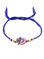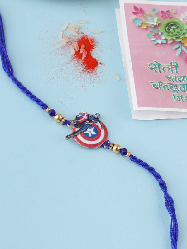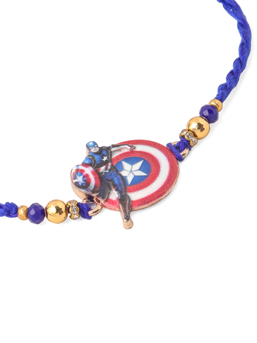 NVR Kids Superhero Blue Artificial Beads Thread Rakhi with Roli Chawal Chandan & Mishri
