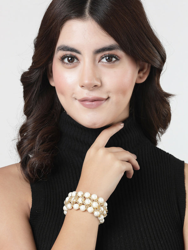NVR Women White Beaded Elasticated Bracelet - Distacart