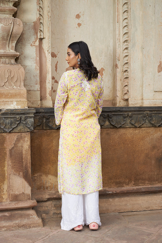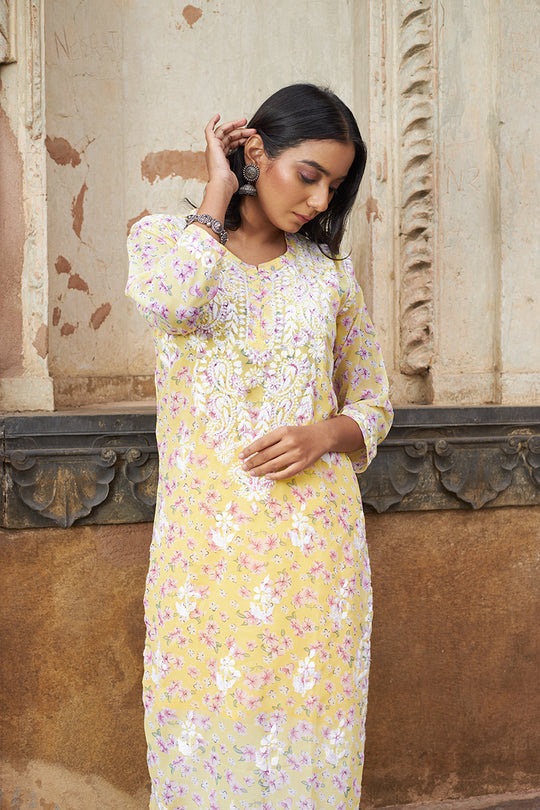 Eliza - premium georgette kurta with intricate handwoven chikankari work Premium mulmul inner provided with the kurta in same colour