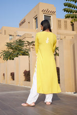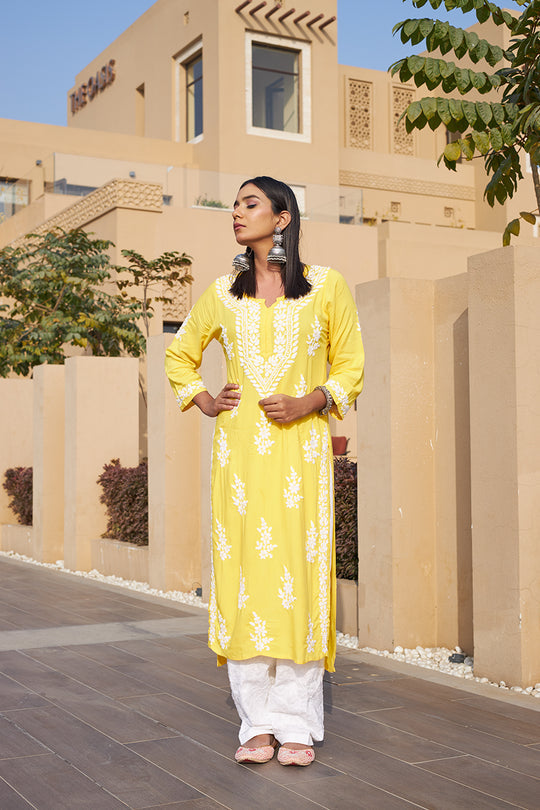 Liya - rayon kurta with intricate handwoven chikankari resham work.