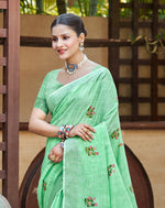 Sangam Prints Bottle Green Linen Woven Work Traditional Saree - Free Size