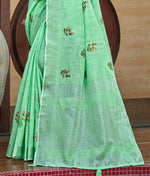 Sangam Prints Bottle Green Linen Woven Work Traditional Saree