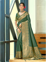 Sangam Prints Dark Green Assam Silk Woven Work Traditional Saree - Free Size