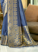Sangam Prints Navy Blue Assam Silk Woven Work Traditional SareeAbout the product:SANGAM PRINTS brings to you this saree which is made from Linen fa...