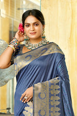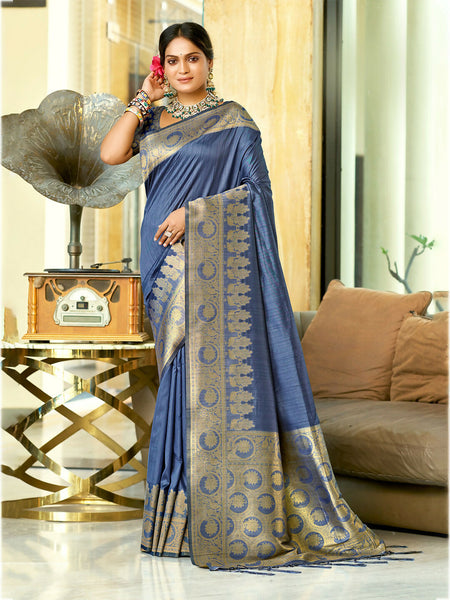 Sangam Prints Navy Blue Assam Silk Woven Work Traditional Saree - Free Size